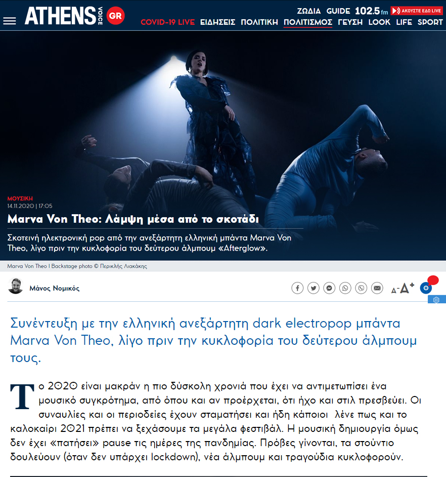Συνέντευξη στην Athens Voice: Marva Von Theo: Λάμψη μέσα από το σκοτάδι