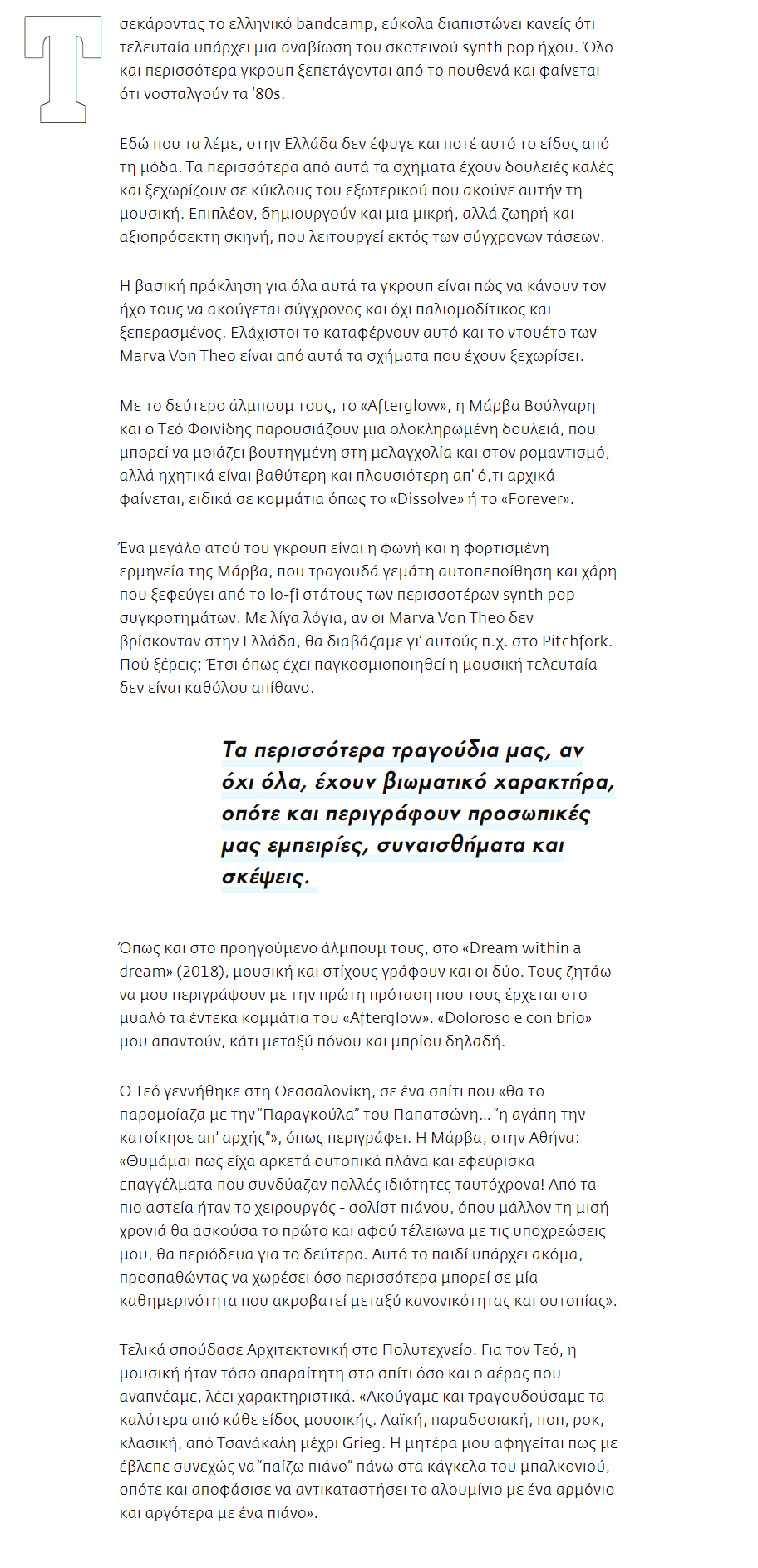 afterglowInterviewσυνέντευξηlifoMarva Von Theonew albumsynthpop Interview, Press