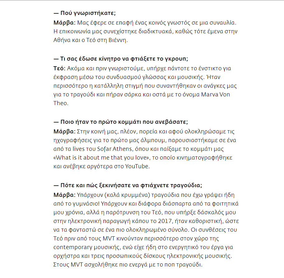 Συνέντευξη στη Lifo: Marva Von Theo: Νοσταλγική synth pop με αέρα από ’80s